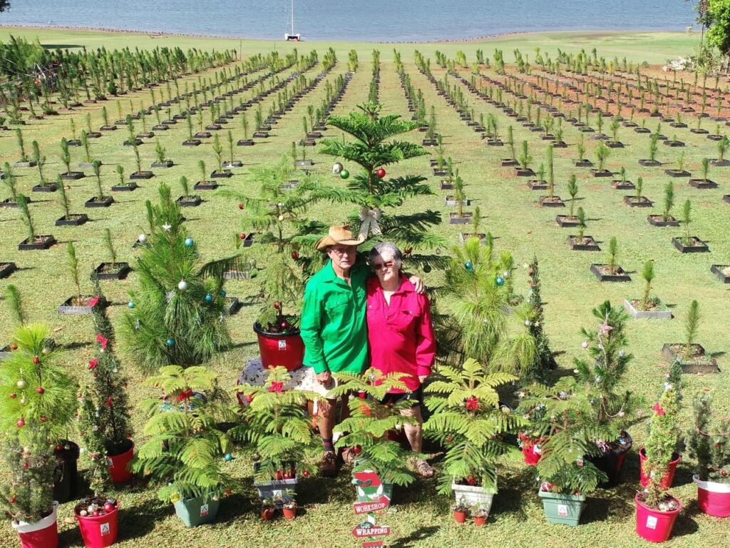 WWOOF Australia Hosts, Brian and Annette Hampton have a small boutique potted Christmas tree farm located on a small lakeside acreage in the beautiful Atherton Tableland in QLD. The couple now in their 70s had been in and out of retirement for 30 years but the thought of people growing Christmas trees for five years then using it for 10 days and burning it, just didn’t appeal to them. Brian and Annette began their adventure of Alive Christmas Tree Farm as a hobby, growing their Christmas trees organically and learning a lot from YouTube videos. They grew some Caribbean Pine which enabled them to get a little cash flow, and experimented with pine Australiana and Norway Spruce seeds, but being situated at 800 meters elevation with high rainfall, they found they were far better off sticking with Norfolk pine, as hardy as they come, surviving indoors and best known as Australia’s Christmas tree.
