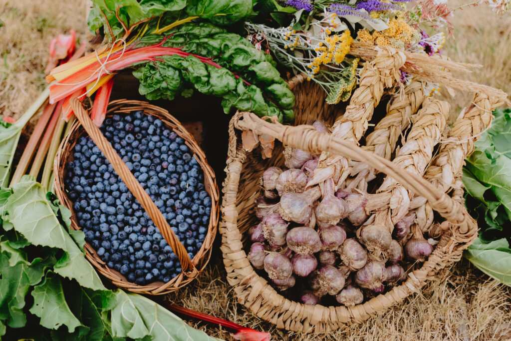 Next came garlic. While blueberries and garlic might sound like an odd pairing (and I’ve never eaten them together!), they complement each other well for my style of farming. Both are high-value crops in local markets—essential for making a living on such a small property—and garlic’s planting, growing, and harvesting all take place outside the main blueberry picking season. Selling garlic also overlaps neatly with blueberry sales, giving me two products without doubling up all the work at once.